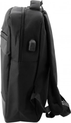 The backpack has one large compartment with an internal divider, which facilitates the organization of books, documents, or a slim notebook. On the front of the backpack, there is a zippered accessory pocket, ideal for a phone, keys, or other small items. The built-in USB port and included cable allow convenient charging of a phone or other devices using a power bank (power bank not included).