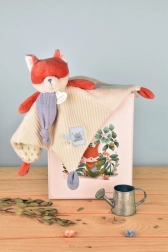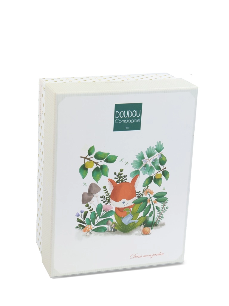 The cuddle toy is designed for exploration and cuddling, providing entertainment and comfort for the child. It supports sensory development and the development of fine motor skills. It comes packaged in an elegant gift box that serves as a memory storage for photographs and other mementos of the child's birth and development. The "My Garden" toy collection is inspired by nature, both in colors and toy names, evoking various garden plants.