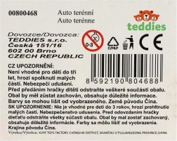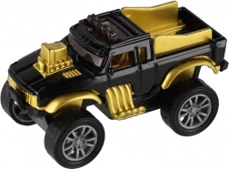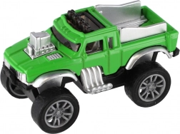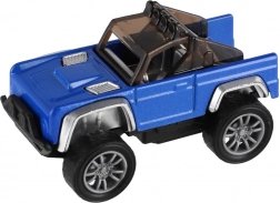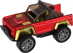 Small but durable off-road toy car combining metal and plastic parts, featuring a fun pull-back mechanism. Just pull it back and the car will speed off on its own. Ideal for action-packed play at home or on the go, a great small gift for children aged 3+.