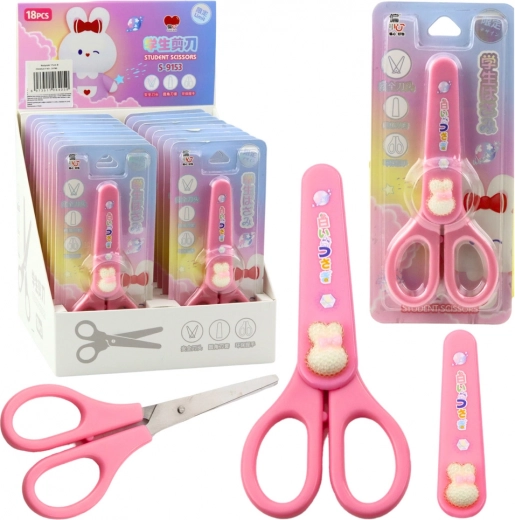 The school scissors come with a decorative protective cover that protects the blades from damage and ensures safe storage in a pencil case or backpack. The decorative design with a bow and pastel pink color makes the scissors a fun and attractive tool.