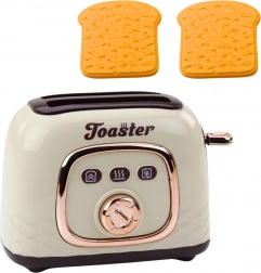 The package includes two plastic toasts that can be repeatedly inserted and ejected from the toaster with a simple mechanism. This toy is ideal for a children's kitchen, suitable for individual or group play.