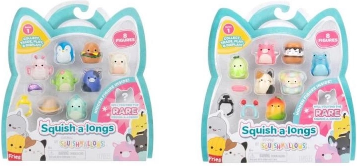 Discover the world of cute characters with the Squish A Long set of 8 figures W2. This set includes eight adorable figures that you can attach using a special ring. Additionally, it also includes accessories and two secret figures for even more fun.