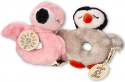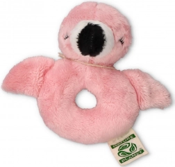 This pink plush rattle in the shape of a flamingo is an ideal first friend for a baby. It is pleasantly soft, safe to the touch, and thanks to the central opening it is easy to hold even in tiny hands. The gentle rattling engages hearing and helps develop hand–eye coordination.