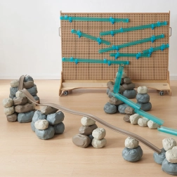 Elastic Track with Rubber Building Blocks is a lightweight and safe construction set made from flexible plastic. Designed for creative play, it allows for the construction of supports, obstacles, and various structures for racing tracks and gravity experiments.