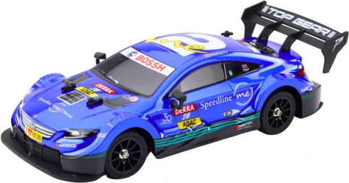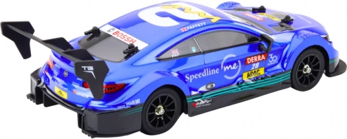The remote-controlled racing car is a dream for young fans of fast driving and drifting. This model in 1:16 scale offers a dynamic and realistic design, blue paint, and details inspired by real racing cars. With LED lighting and drift function, it can drive smoothly and impressively on solid surfaces and in controlled skids.