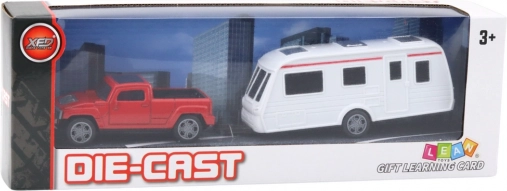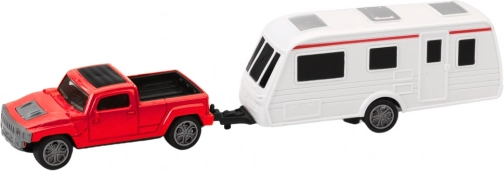 Car Set with Caravan is ideal for children who love cars, travel, and adventure. The red off-road vehicle with a metal body and the caravan form a unique set that stands out with a realistic look and sturdy construction.