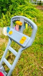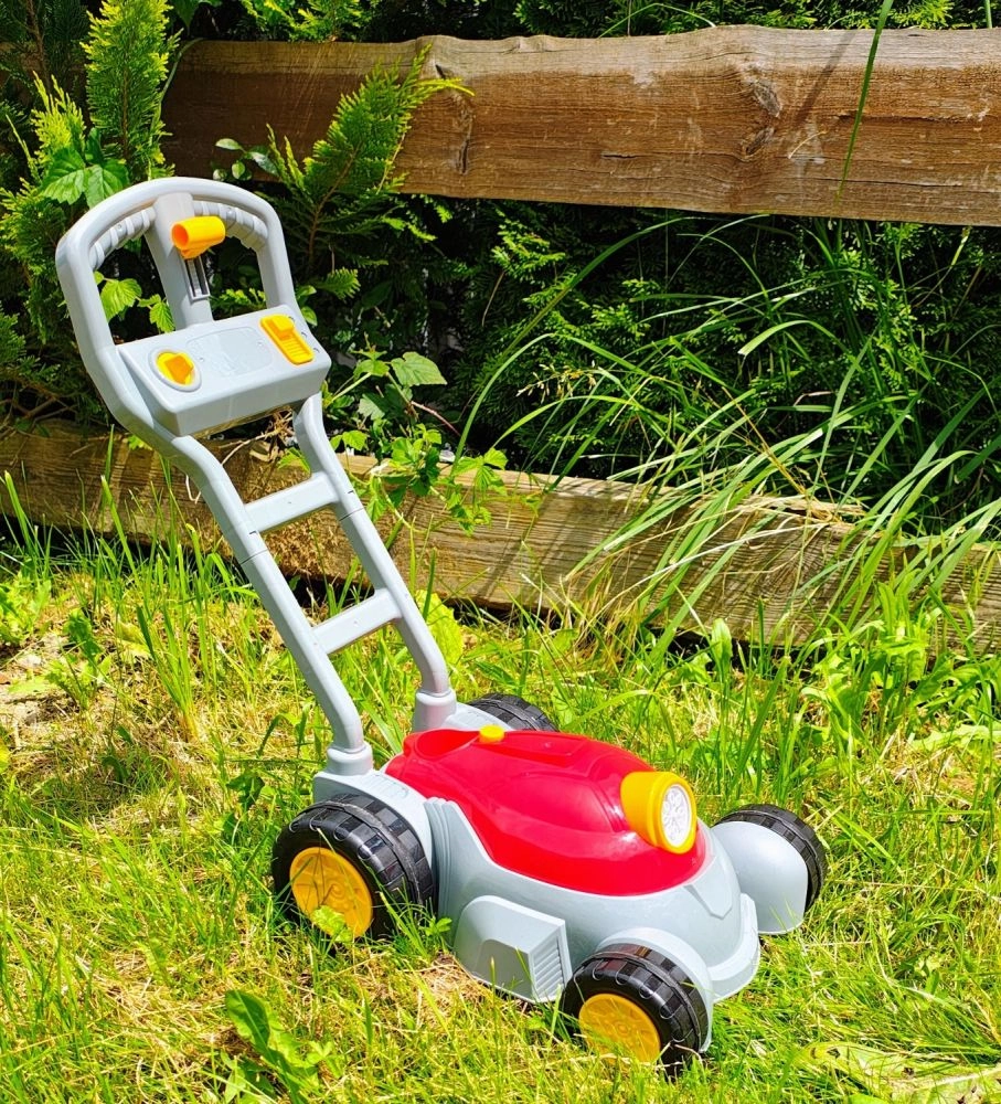 The lightweight build, robust handle, and large wheels ensure easy pushing on grass and hard surfaces. The toy encourages movement, imagination, and role-play, making it perfect for outdoor fun in the garden, on the terrace, or in the park.