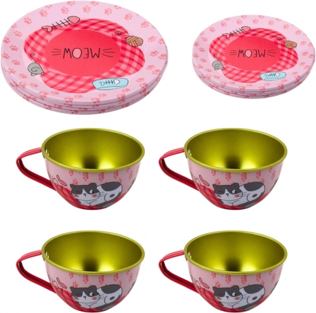 Give your children an extraordinary experience in household play and tea parties with this metal set featuring a cat motif. The set is designed to foster imagination and social skill development in children. Perfect for solo play or with siblings and friends.