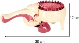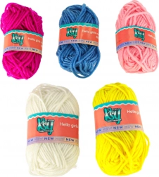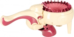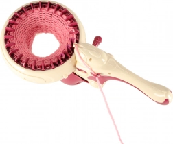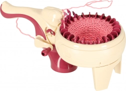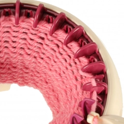 With the integrated knitting machine, you can easily knit various projects from scarves to hats. The set includes everything you need: 1 knitting machine, a stabilizing base, a needle, and a hook. The yarn color palette includes yellow, blue, white, purple, and pink, allowing a wide range of combinations and designs.