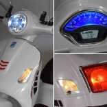 Iconic VESPA style scaled down for kids. The model offers a comfortable seat, stabilizing wheels for safe beginnings, and precise workmanship with attention to detail. Two 12 V motors (30 W) and a 2× 6 V battery ensure smooth starts and an enjoyable ride.
