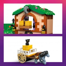 Discover country life with friends from Heartlake City. This set combines animal play with a highly detailed setting: a stable with a sleeping loft, a cozy lounge, outdoor horse-shaped lighting, and a large yard for pony care. The functional hay hoist easily moves bales to the loft or onto the wagon, letting kids imagine realistic farm chores.