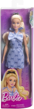 This modern Barbie Model shines in a light blue dress adorned with a bow print and a standout bow at the neckline. Long blonde hair with an elegant black bow and coordinated shoes give the doll an iconic look you’ll love instantly. Thanks to movable joints, she easily strikes natural poses, encouraging imagination and the development of fine motor skills.