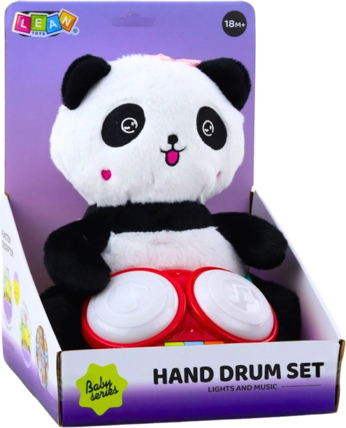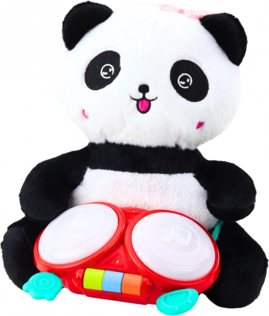 Cute plush panda with drums, sound, and light effects, ideal for children from 18 months.