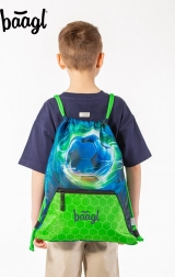 This set of school supplies with a soccer ball motif from Baagl includes a backpack, pencil case, sack, apron, and wallet. Lightweight and ergonomic backpack Zippy Plus with reinforced structure and adjustable straps is ideal for young schoolchildren.