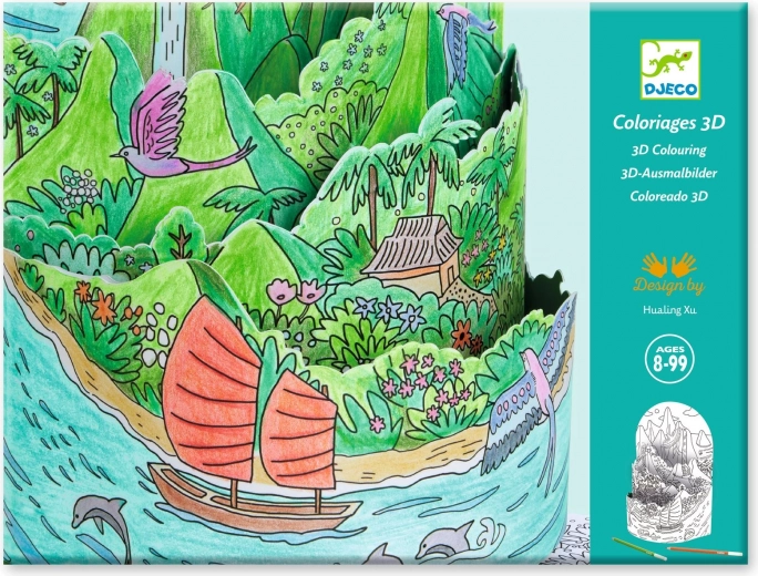 Discover fun and creativity with the 3D Coloring Book To the Mountain Peaks by Djeco. This special coloring book transforms ordinary drawing into three-dimensional artworks:
