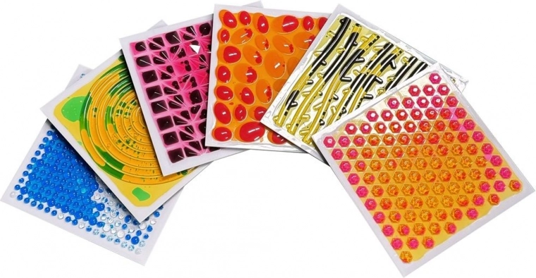 The set includes six square liquid mats measuring 30x30 cm. These mats are filled with a non-toxic mixture of water and oil, creating fascinating visual effects with the combination of vibrant colors. Children can enjoy playing on the mats, developing their motor skills and sensory perception.