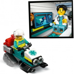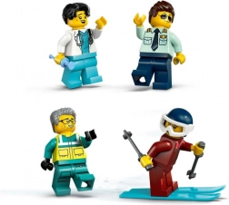 - Minifigures of a pilot, doctor, rescuer, and skier