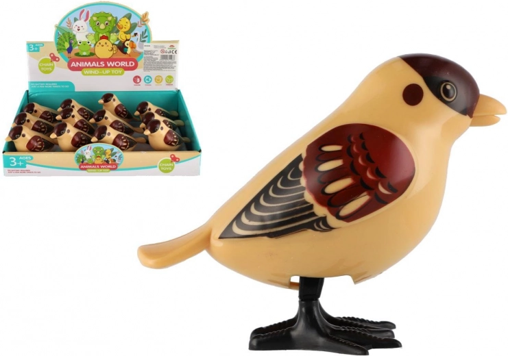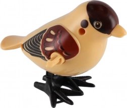 Adorable plastic bird with a key, which jumps across the table or floor when wound up, bringing joy to children who love animals and movement.