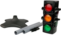 Battery-powered traffic light with realistic functions, ideal for teaching children the rules of road traffic. Thanks to automatic light switching and adjustable height, it provides an interactive experience for motorists and pedestrians alike.