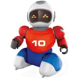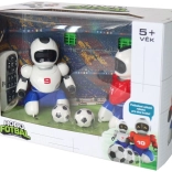 This toy is ideal for children aged 5 and up and is made from high-quality plastic. The package includes 2 robots, 2 controllers, 2 goals with field fencing, 2 USB charging cables, and an instruction manual. Each robot is 16 cm tall. Package dimensions are 36 x 24 x 19 cm.