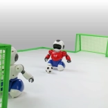 Experience the excitement of a football match with Robofootball, where two robots compete in the art of driving the ball into the opponent's goal. Each robot is controlled by a separate remote, which ensures maximum control over their movements and actions.