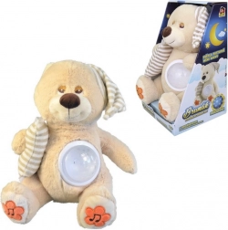 - Light projector: The teddy projects gentle, changing light that soothes and prepares for sleep.