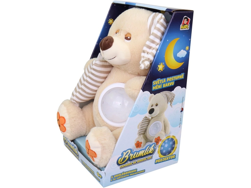 MaDe Teddy Brumlík is a great goodnight companion for little ones. With lullabies and a projector, it helps your child fall asleep more easily.