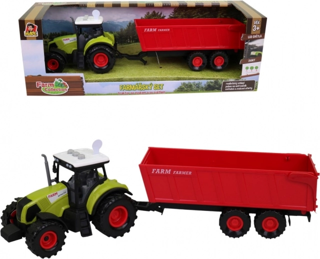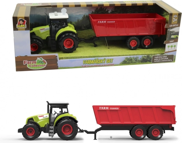 Tractor with trailer with lights and sounds for children. Interactive toy from the Farm Collection series made of plastic. The perfect gift.