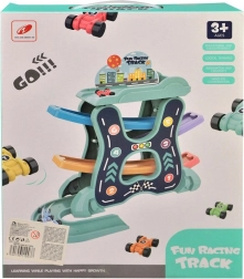 This amazing multi-level race track guarantees endless hours of fun for little racers. It is designed so the cars descend without the need for a drive. The package includes: