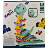 Enjoy hours of fun with the Tiered Dinosaur Raceway. With dimensions of 40 x 35 x 9 cm, it is compact enough to fit into any child's room, yet offers ample space for play with six toy cars. Each car can race along the track, all without complex setup thanks to easy assembly. The product requires 2 AAA batteries, which are not included in the package.