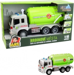 This tanker truck is the perfect toy for all boys who love big vehicles and want to experience adventures. Designed for children aged 3 and up, it is made from safe plastic. The toy's dimensions are 26.5 x 10 x 13.5 cm, making it easy to handle and attractive to young drivers. With its inertia feature and added light and sound effects, playtime becomes even more fun.