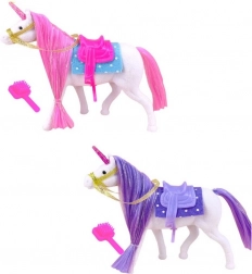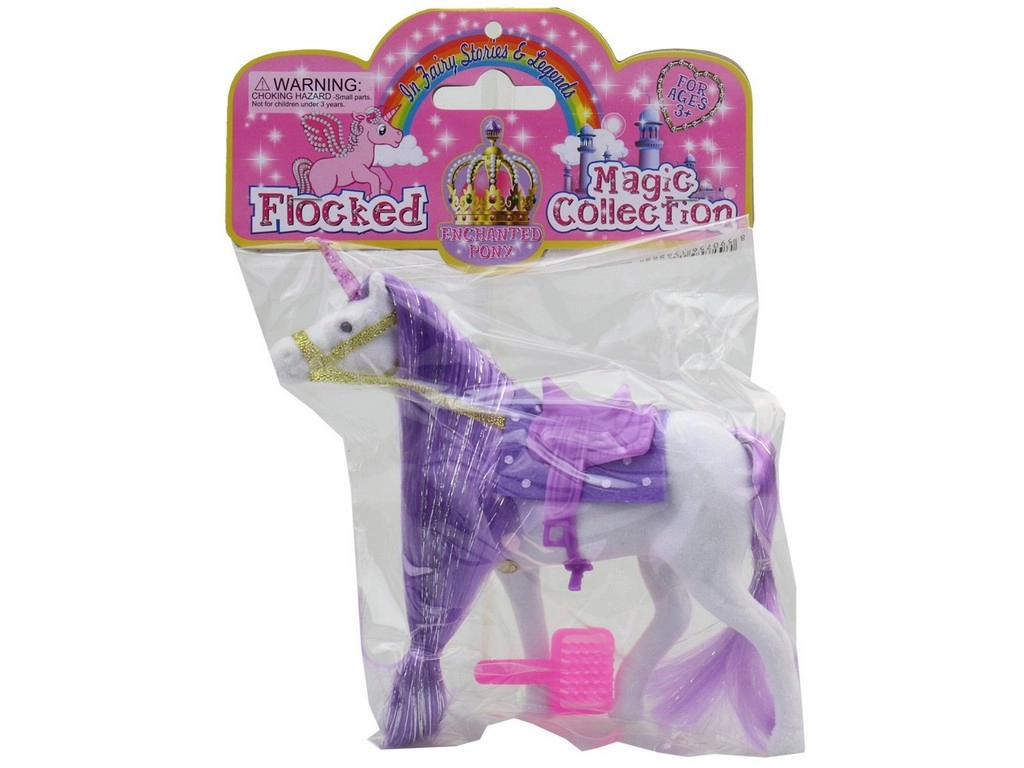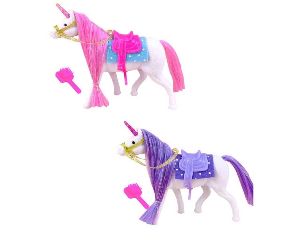A fun unicorn for children that brings hours of play and creativity. This toy horse includes a brush, bridle, saddle, and saddle pad.