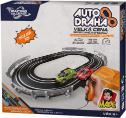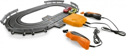 This race track is ideal for all avid racers aged 6 and up. With its simple assembly, you can race on two separate tracks using two controllers. The package includes two differently colored racing cars. Which color will win the race?