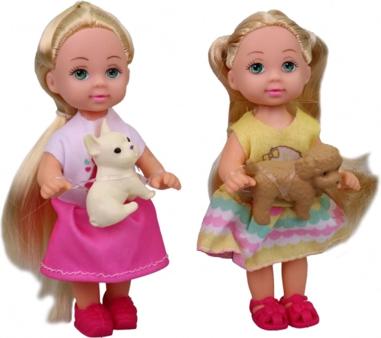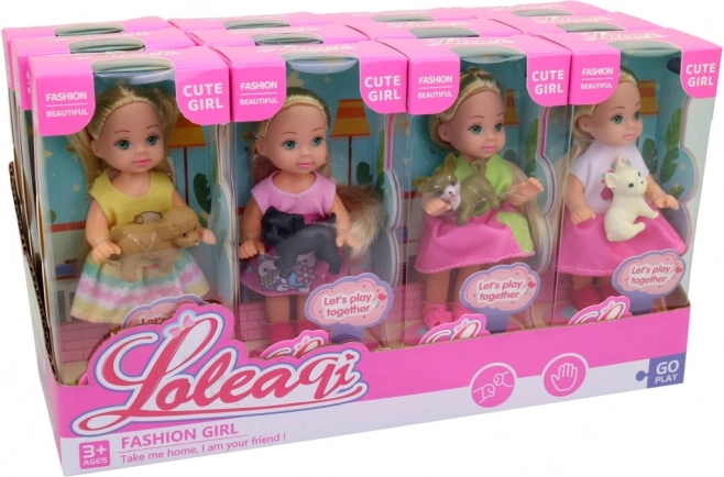 Doll with Dog 11 cm for children 3+. Ideal toy for girls, safe plastic, 12 pcs in a display box.