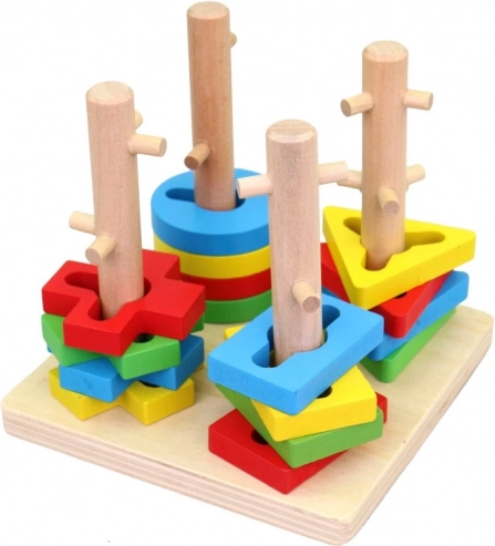 This beautifully colored wooden shape sorter is designed to stimulate children's interest in shapes and colors. Thanks to its thoughtful design, children engage in learning in a fun way: