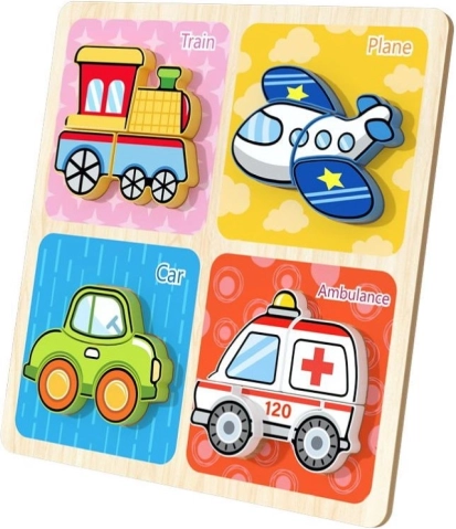 The wooden puzzle measuring 30 x 30 cm features images of four different means of transport, adding appeal and educational value to the game. With these puzzles, children not only play, but also practice their fine motor skills and logical thinking, which is ideal for children from the age of 3.