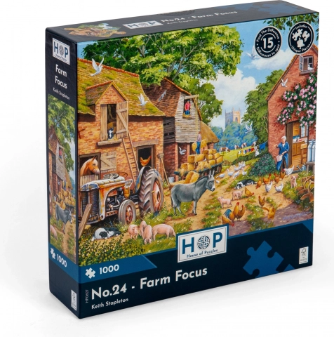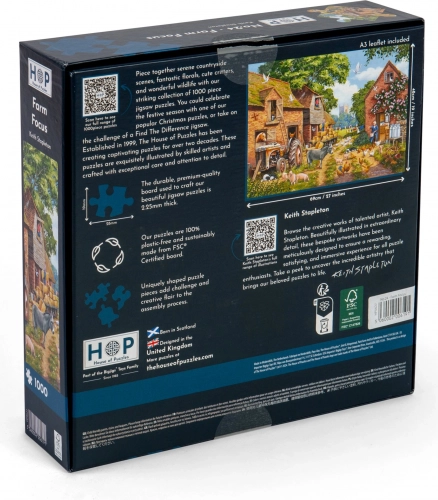 Enjoy assembling this beautiful 1000-piece puzzle with a farm theme, made from quality materials and featuring unique piece shapes for a more challenging experience.