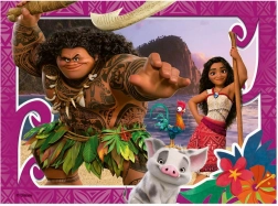Enjoy fun with the progressive Ravensburger Vaiana puzzle, which offers four separate images with increasing difficulty, ideal for both children and adults.