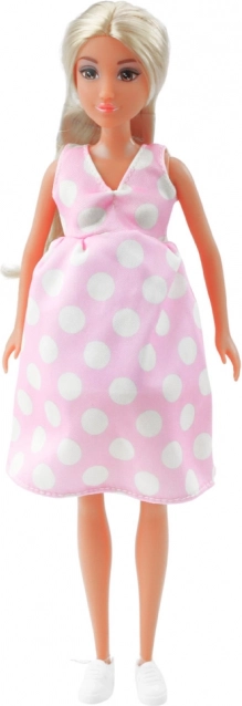 Pregnant Anlily Doll is perfect for children who love creative play and family roles. The stylish pink dress with white polka dots beautifully emphasizes her role as an expectant mother.