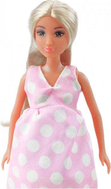 Pregnant Anlily Doll in Pink Polka Dot Dress Long Hair