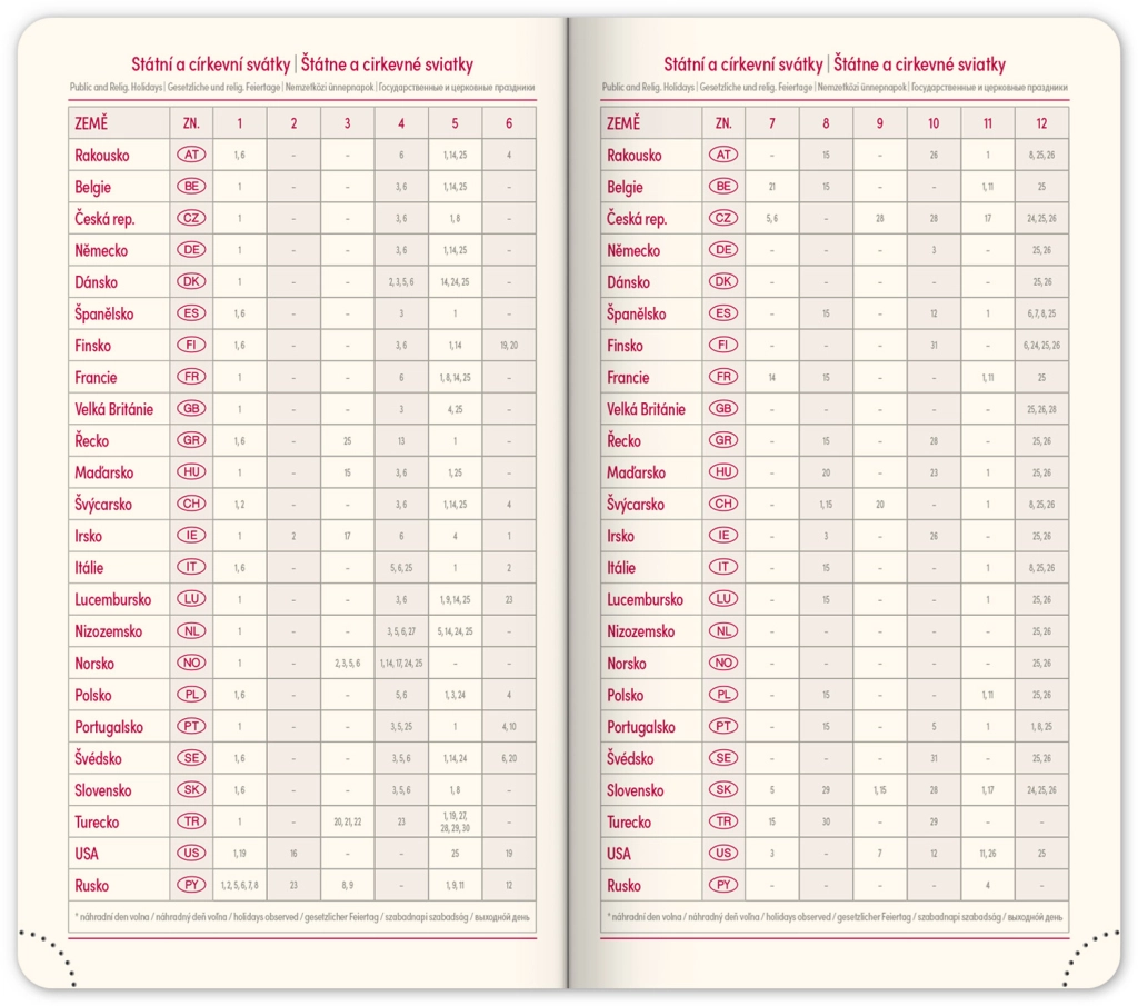 The Panama Diary 2026 in red is a perfect assistant for personal and professional planning. It features a weekly layout with a Czech-Slovak calendar, supplemented with English, German, Hungarian, and Russian.