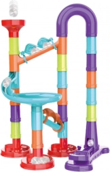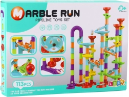 The children's marble run model is ideal for little builders who love colorful design and a variety of building elements. Each construction provides hours of creative fun thanks to 113 elements, including 30 glass marbles and 83 components. The toy supports spatial and logical thinking, making it an excellent choice for individuals or groups.