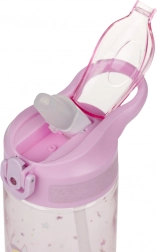 The bottle is equipped with a practical flip spout and straw, which makes drinking easier for younger children.