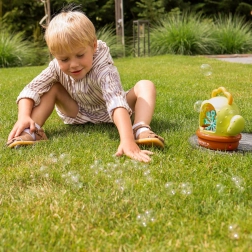 Kick-start the fun with the adorable cactus-shaped bubble machine from WOOPIE. After pouring in the solution and switching it on, it instantly produces hundreds of bubbles, enhanced with light effects and sounds. Thanks to easy controls, a sealable solution container, and a practical handle, it’s ideal for both indoor rooms and the garden for children aged 3+.