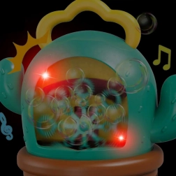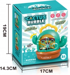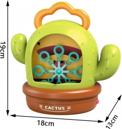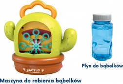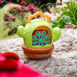 The electric cactus-shaped bubble machine turns any afternoon into a magical spectacle. Just pour in the solution, press the button, and enjoy a cascade of sparkling bubbles that delight kids and adults alike. Quality workmanship and a safe design ensure carefree play both indoors and outdoors.