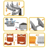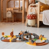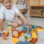 This large construction set combines the world of trains and racing tracks into one fun kit. Thanks to the elastic, interlocking pieces, children can easily build straights, bends, ramps, and bridge sections. Construction machines, gates, signs, and other decorations create a realistic atmosphere that sparks imagination and independent play.