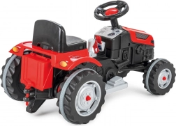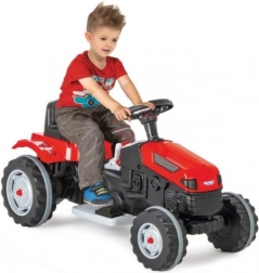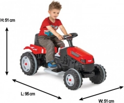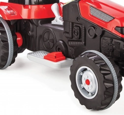 The tractor is equipped with a lever for forward and backward driving, making it easy to control. It also features a horn for sound signaling and an automatic brake that activates when the child removes their foot from the accelerator, ensuring user safety.