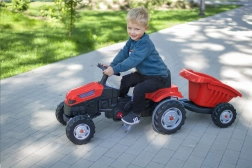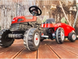 The pedal tractor Farmer GoTrac MAXI with trailer is the ideal gift for every child. It features a patented steering system that makes riding easy even for the youngest users.