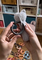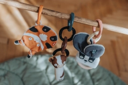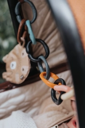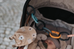Connecting Rings OčKO are designed with an emphasis on safety and multifunctional use. They allow easy attachment of toys, diapers or small items to the stroller. You can create a fun chain for play and teething from several rings.
