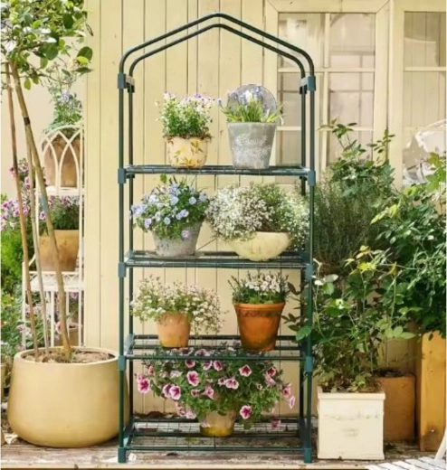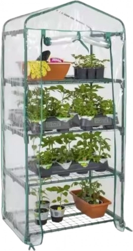 The mini greenhouse for balcony/garden is a practical and aesthetic solution, which serves well on an urban balcony or in a garden. With its thoughtful design, four shelves and transparent PVC film, it provides ideal conditions for growing ornamental plants, herbs, and vegetables throughout the season.